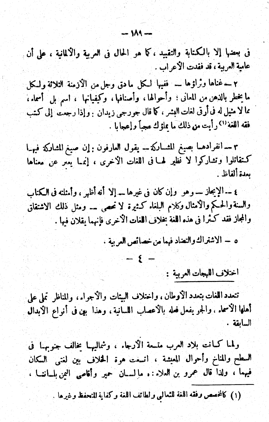 ولما كانت بلاد العرب متسعة الأرجاء، وشماليها يخالف جنوبيها في السطح والمناخ وأحوال المعيشة، اتسعت هوة الخلاف بين لغتي السكان فيهما؛ ولذا قال عمرو بن العلاء: "ما لسان حمير وأقاصي اليمن بلساننا،