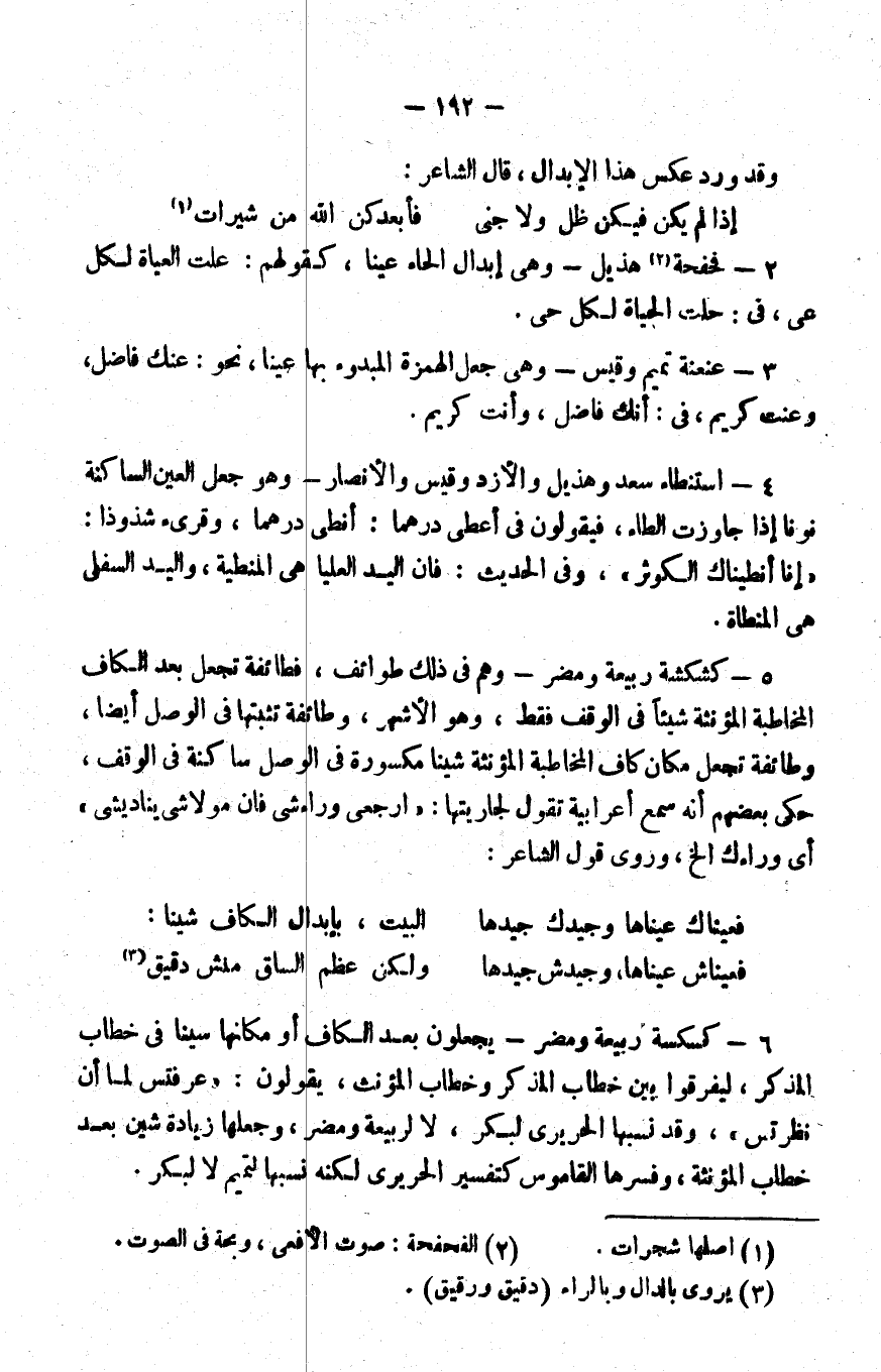 2- فحفحة2 هذيل: وهي إبدال الحاء عينا، كقولهم: علت العياة لكل عي، في: حلت الحياة لكل حي.