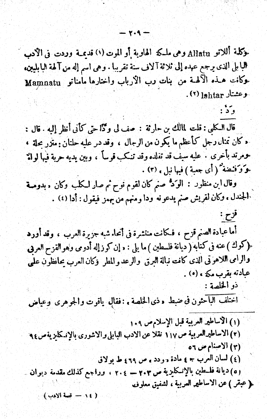 5 ديانة فلسطين بالإنجليزية ص203, 204، وراجع كذلك مقدمة ديوان "عبقر" عن الأساطير العربية، لشفيق معلوف.