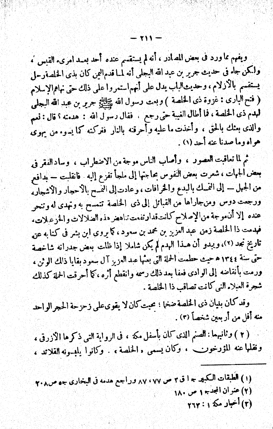 2- وثانيهما: الصنم الذي كان بأسفل مكة، في الرواية التي ذكرها الأزرقي ونقلها عنه المؤرخون، وكان يسمى "الخلصة", وكانوا يلبسونه القلائد،