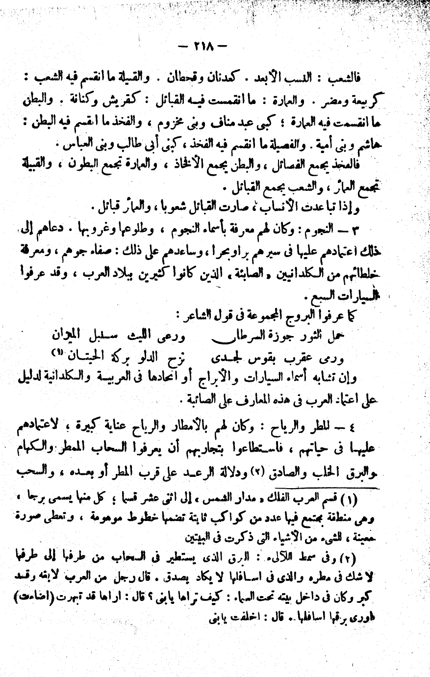1 قسم العرب الفلك "مدار الشمس" إلى اثني عشر قسما، كل منها يسمى برجا، وهي منطقة يجتمع فيها عدد من كواكب ثابتة تضمها خطوط موهومة، وتعطي صورة معينة للشيء من الأشياء التي ذكرت في البيتين.