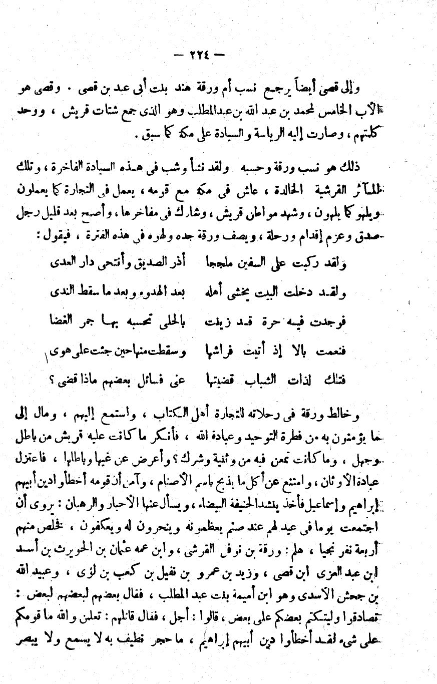 ذلك هو نسب ورقة وحسبه. ولقد نشأ وشبّ في هذه السيادة الفاخرة، وتلك المآثر القرشية الخالدة، عاش في مكة مع قومه يعمل في التجارة كما يعملون, ويلهو كما يلهون، وشهد مواطن قريش، وشارك في مفاخرها، وأصبح بعد قليل رجل صدق وعزم إقدام ورحلة، ويصف ورقة جده ولهوه في هذه الفترة، فيقول:
