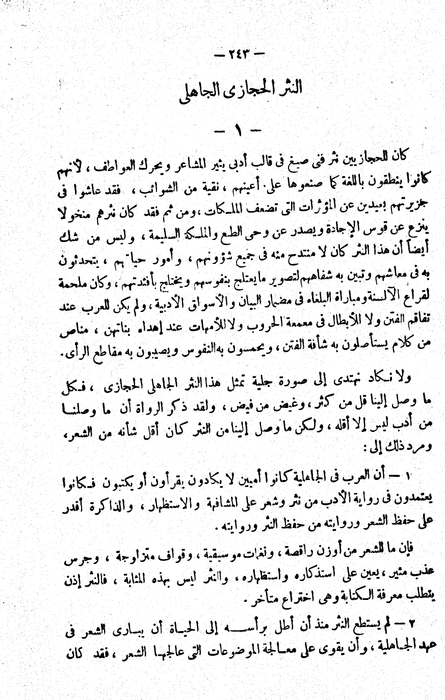 2- لم يستطع النثر منذ أن أطل برأسه إلى الحياة أن يباري الشعر في عهد الجاهلية، وأن يقوى على معالجة الموضوعات التي عالجها الشعر، فقد كان