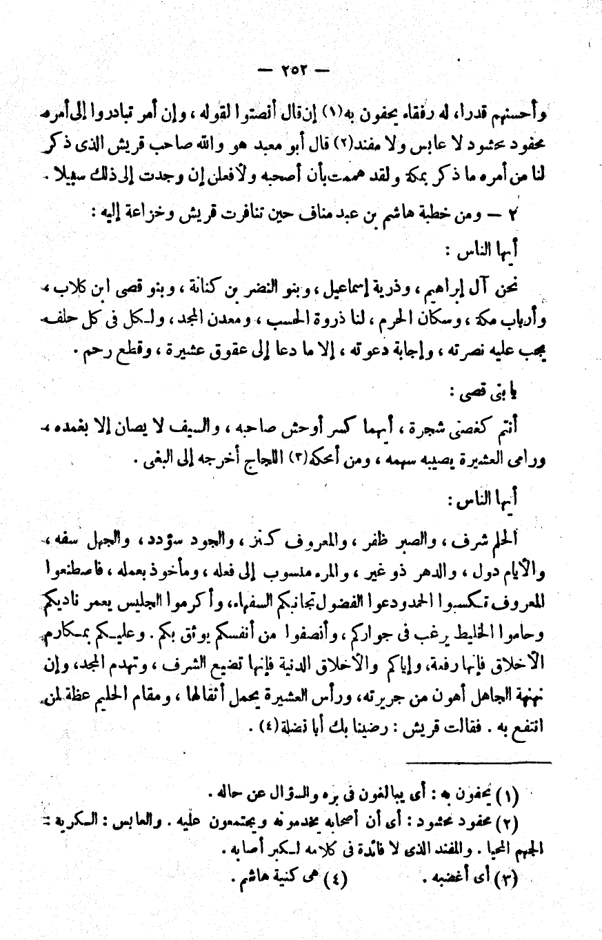 2- ومن خطبة هاشم بن عبد مناف, حين تنافرت قريش وخزاعة إليه:
