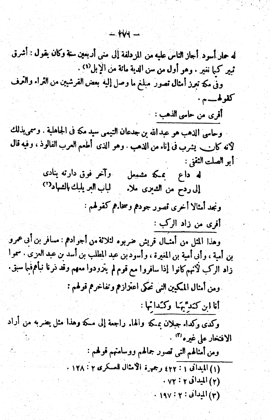 وهذا المثل من أمثال قريش, ضربوه لثلاثة من أجوادهم: مسافر بن أبي عمرو بن أمية، وأبي أمية بن المغيرة، وأسود بن عبد المطلب بن أسد بن عبد العزى. سموا زاد الركب؛ لأنهم كانوا إذا سافروا مع قوم لم يتزودوا معهم, وقد ذكرنا نبأهم فيما سبق.