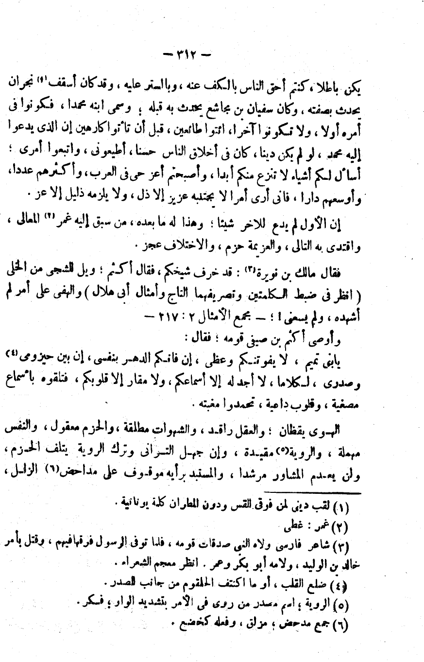 الهوى يقظان، والعقل راقد، والشهوات مطلقة، والحزم معقول، والنفس مهملة، والروية5 مقيدة، وإن جهل التواني وترك الروية يتلف الحزم، ولن يعدم المشاور مرشدا، والمستبد برأيه موقوف على مداحض6 الزلل،