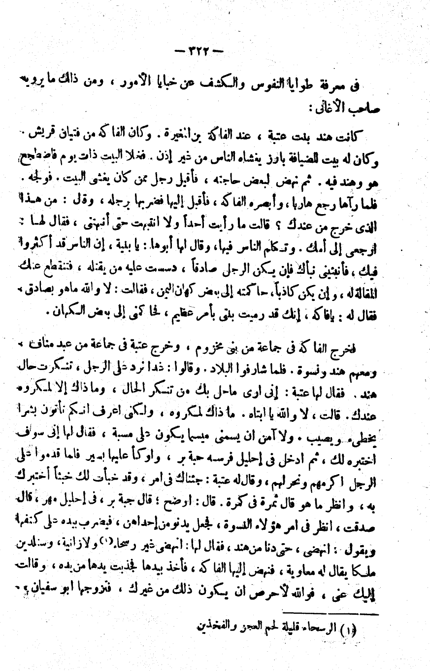 في معرفة طوايا النفوس والكشف عن خبايا الأمور، ومن ذلك ما يرويه صاحب الأغاني: