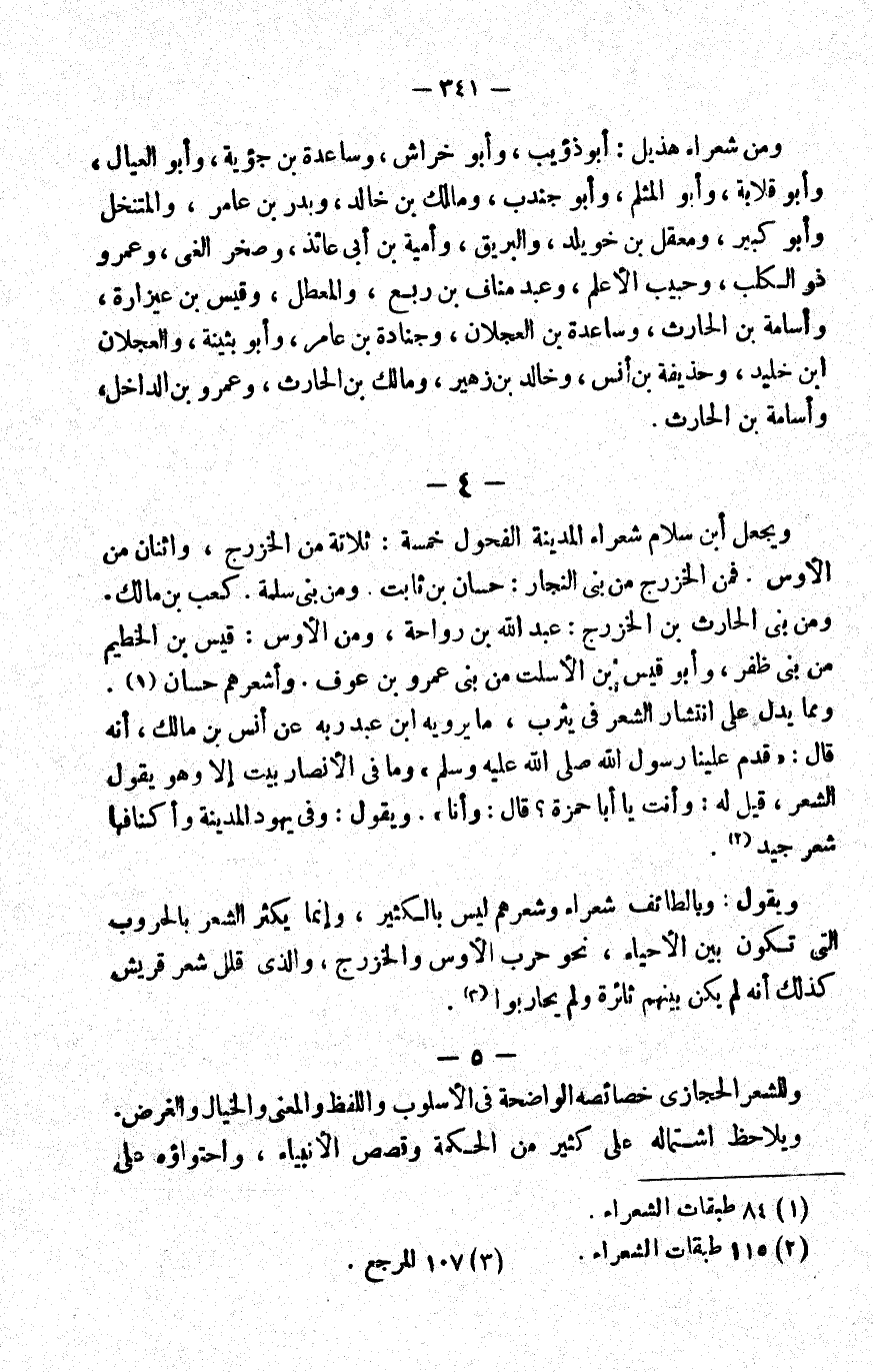 ويقول: وبالطائف شعراء وشعرهم ليس بالكثير، وإنما يكثر الشعر بالحروب التي تكون بين الأحياء، نحو حرب الأوس والخزرج، والذي قلل شعر قريش كذلك أنه لم يكن بينهم ثائرة ولم يحاربوا3.