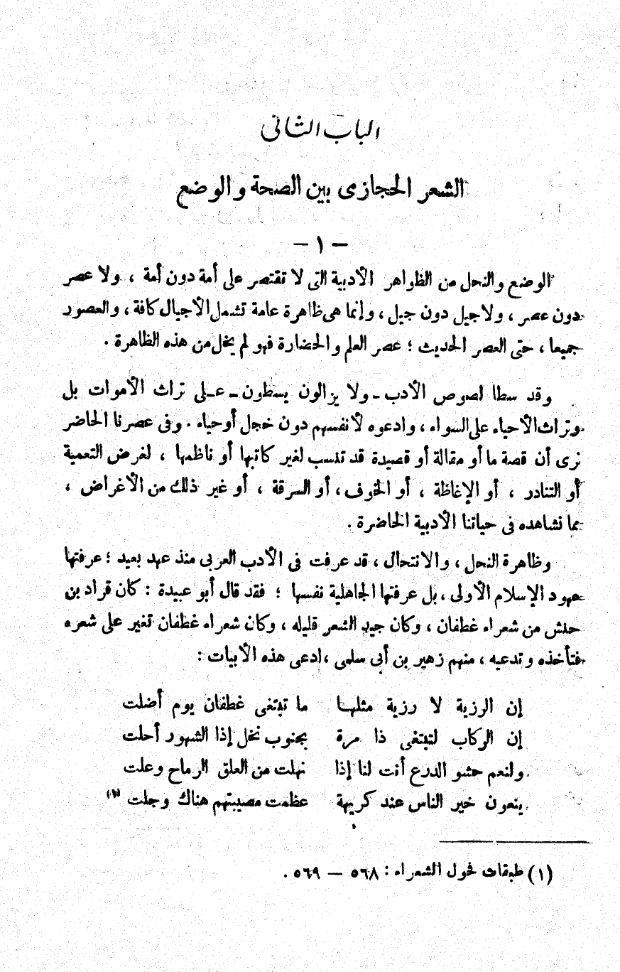 وظاهرة النحل والانتحال، قد عرفت في الأدب العربي منذ عهد بعيد؛ عرفتها عهود الإسلام الأولى، بل وعرفتها الجاهلية نفسها، فقد قال أبو عبيدة: كان قراد بن حنش من شعراء غطفان، وكان جيد الشعر قليله، وكان شعراء غطفان تغير على شعره فتأخذه وتدعيه، منهم زهير بن أبي سلمى ادعى هذه الأبيات: