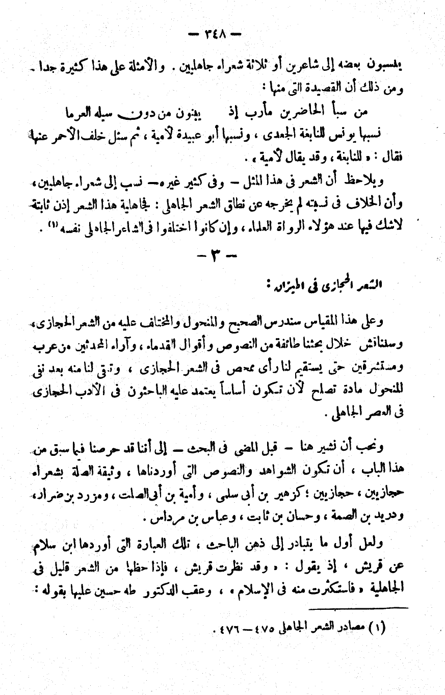 وعلى هذا المقياس سندرس الصحيح والمنحول والمختلف عليه من الشعر الحجازي, وسنناقش خلال بحثنا طائفة من النصوص وأقوال القدماء، وآراء المحدثين من عرب ومستشرقين حتى يستقيم لنا رأي ممحص في الشعر الحجازي، وتبقى لنا منه بعد نفي المنحول مادة تصلح لأن تكون أساسا يعتمد عليه الباحثون في الأدب الحجازي في العصر الجاهلي.