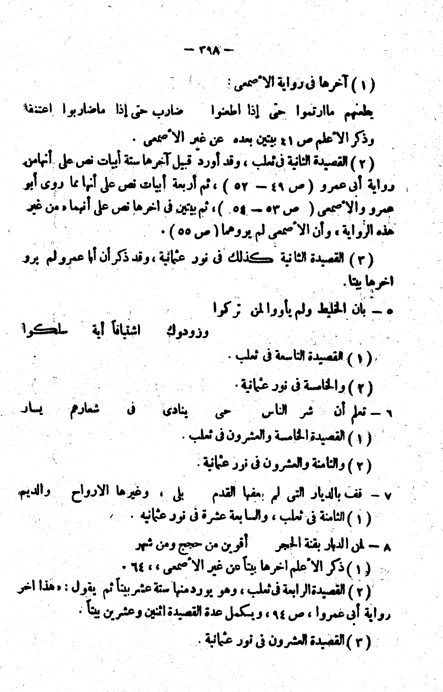 2- القصيدة الرابعة في ثعلب، وهو يورد منها ستة عشر بيتا ثم يقول: هذا آخر رواية أبي عمرو، ص94، ويكمل عدة القصيدة اثنين وعشرين بيتا.