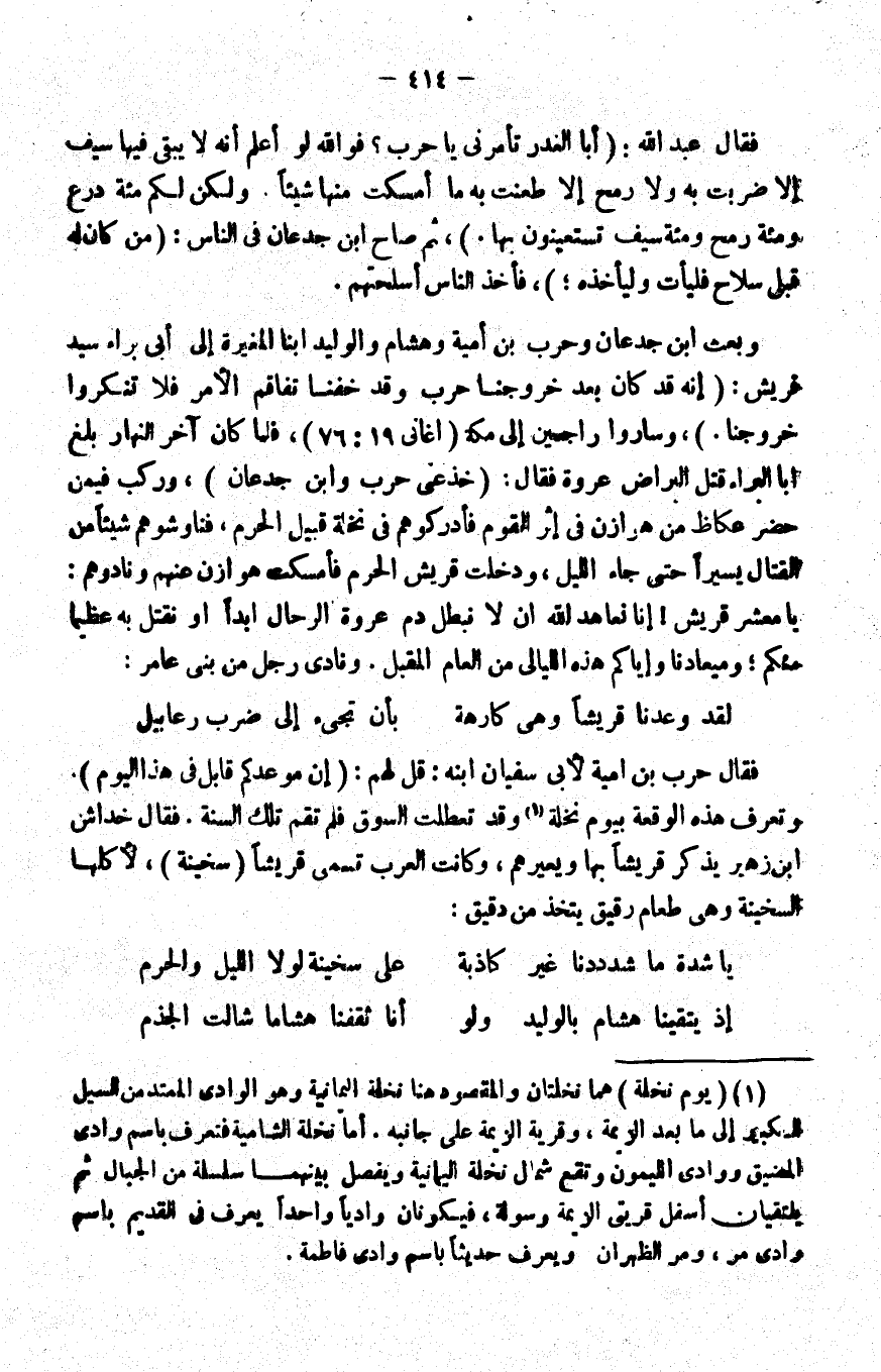 1 "يوم نخلة" هما نخلتان, والمقصود هنا نخلة اليمانية وهو الوادي الممتد من السيل الكبير إلى ما بعد الزيمة، وقرية الزيمة على جانبه. أما نخلة الشامية فتعرف باسم وادي المضيق ووادي الليمون, وتقع شمال نخلة اليمانية ويفصل بينهما سلسلة من الجبال, ثم يلتقيان أسفل قريتي الزيمة وسولة، فيكونان واديا واحدا يعرف في القديم باسم وادي مر، ومر الظهران، ويعرف حديثا باسم وادي فاطمة.