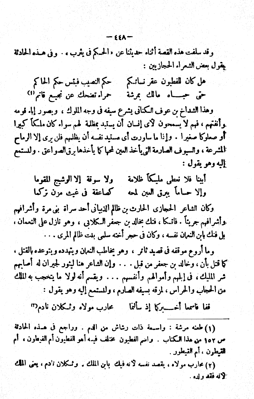 1 طعنة مرشة: واسعة, ذات رشاش من الدم. وراجع في هذه الحادثة ص152 من هذا الكتاب. واسم الفطيون مختلف فيه؛ أهو الفطيون أم الفيطون أم القيطون أم القيطور.
