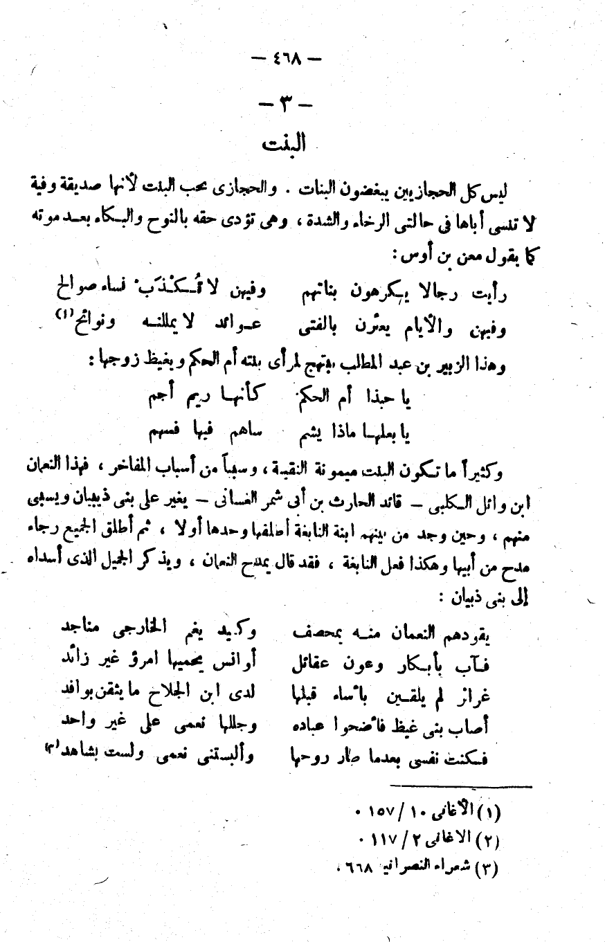 ليس كل الحجازيين يبغضون البنات, والحجازي يحب البنت لأنها صديقة وفية لا تنسى أباها في حالتي الرخاء والشدة، وهي تؤدي حقه بالنوح والبكاء بعد موته, كما يقول معن بن أوس: