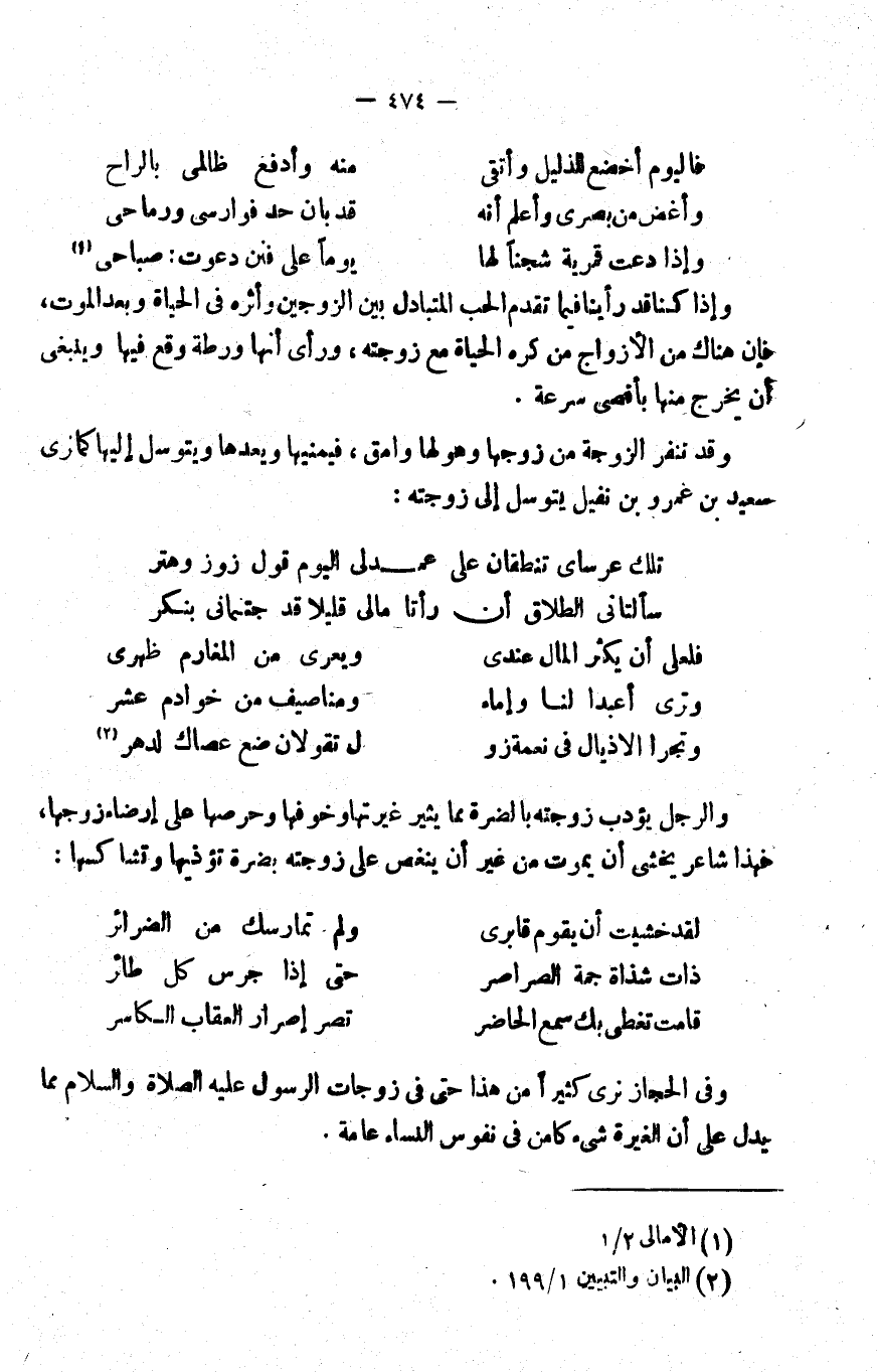 وقد تنفر الزوجة من زوجها وهو لها وامق، فيمنيها ويعدها ويتوسل إليها كما نرى سعيد بن عمرو بن نفيل يتوسل إلى زوجته: