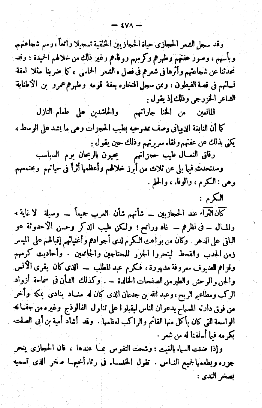 وإذا ضنّت السماء بالغيث، وشحّت النفوس بما عندها، فإن الحجازي ينحر جزره ويطعمها لجميع الناس. تقول الخنساء في رثاء أخيها صخر الذي تسميه بصخر الندى: