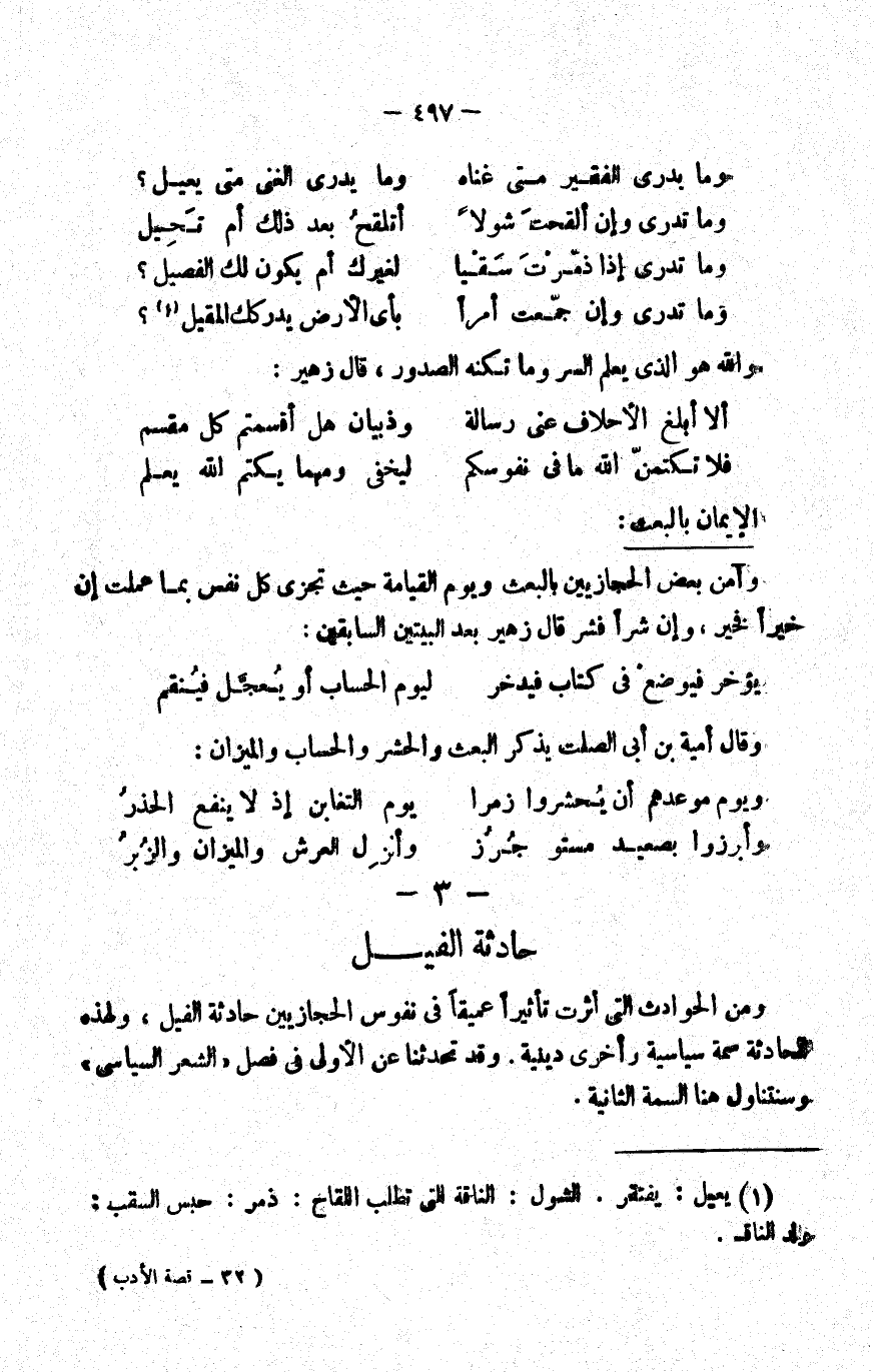 وآمن بعض الحجازيين بالبعث ويوم القيامة, حيث تجزى كل نفس بما عملت؛ إن خيرا فخير وإن شرا فشر. قال زهير بعد البيتين السابقين: