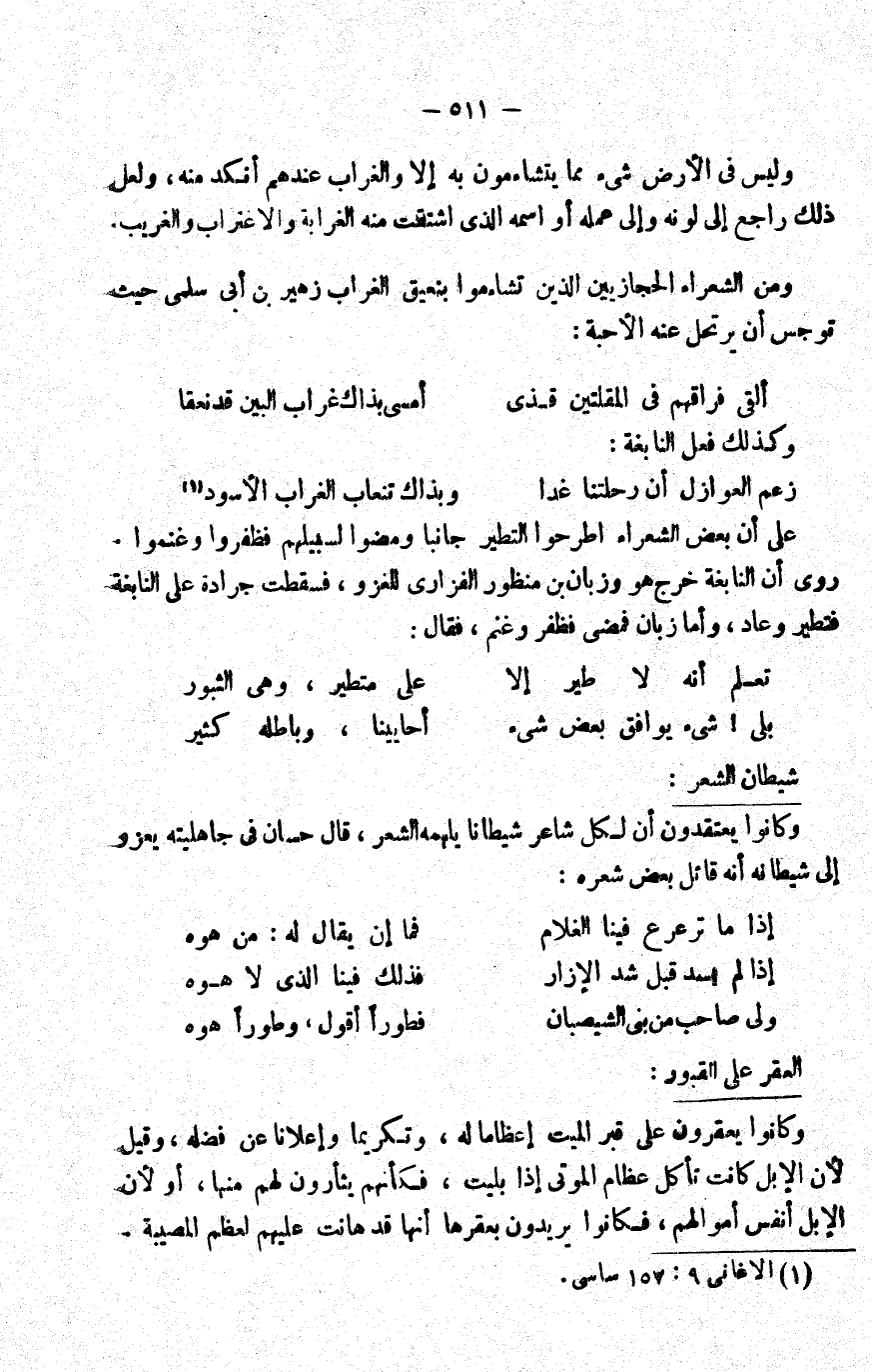 وكانوا يعتقدون أن لكل شاعر شيطانا يلهمه الشعر، قال حسان في جاهليته يعزو إلى شيطانه أنه قائل بعض شعره: