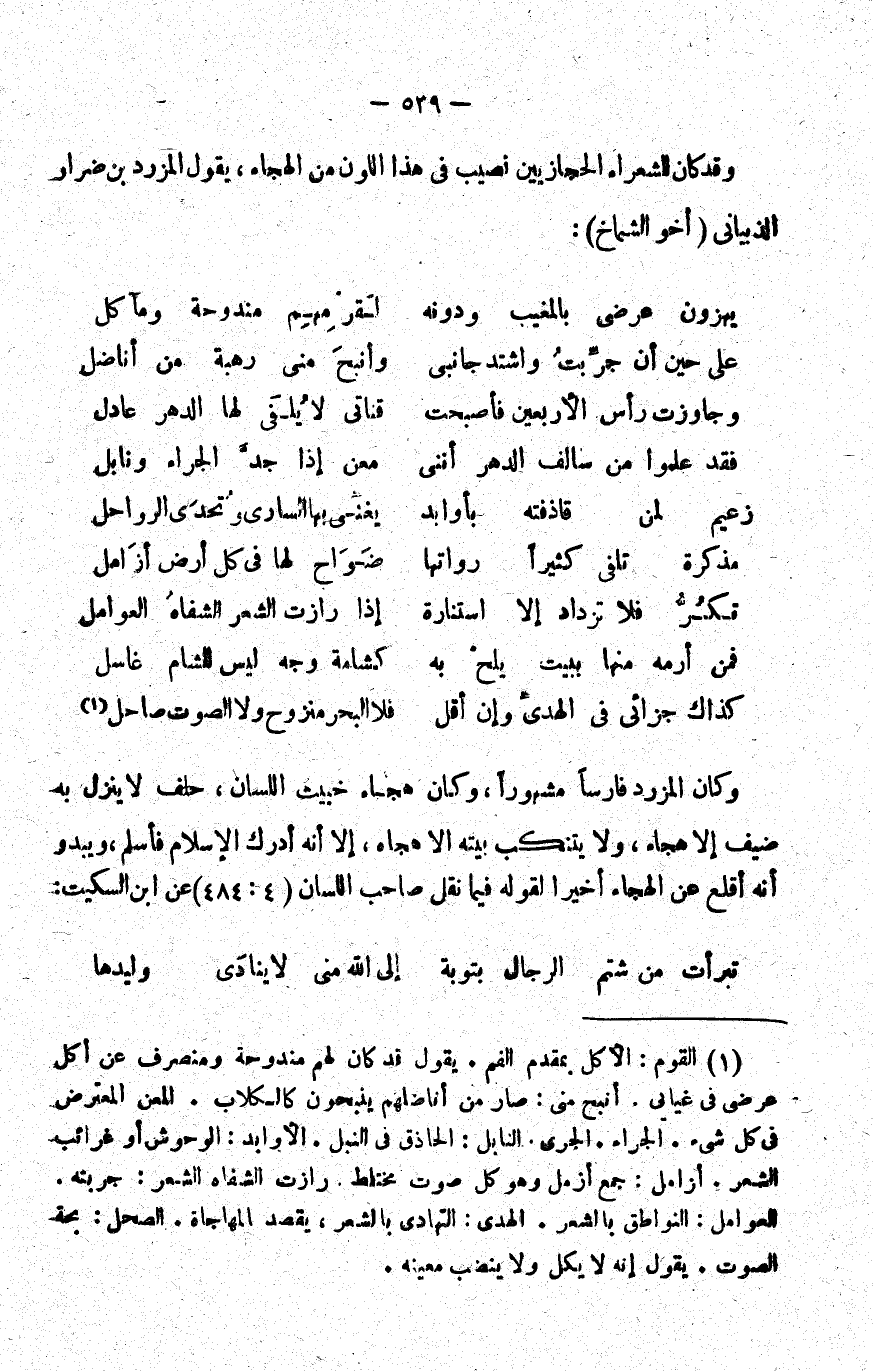 1 القرم: الأكل بمقدم الفم. يقول: قد كان لهم مندوحة ومنصرف عن أكل عرضي في غيابي. أنبح مني: صار من أناضلهم يذبحون كالكلاب. المعن: المعترض في كل شيء. الجراء: الجريء. النابل: الحاذق في النبل. الأوابد: الوحوش أو غرائب الشعر. أزامل: جمع أزمل, وهو كل صوت مختلط. رازت الشفاه الشعر: جربته. العوامل: النواطق بالشعر. الهدي: التهادي بالشعر، يقصد المهاجاة. الصحل: بحة الصوت. يقول: إنه لا يكل, ولا ينضب معينه.