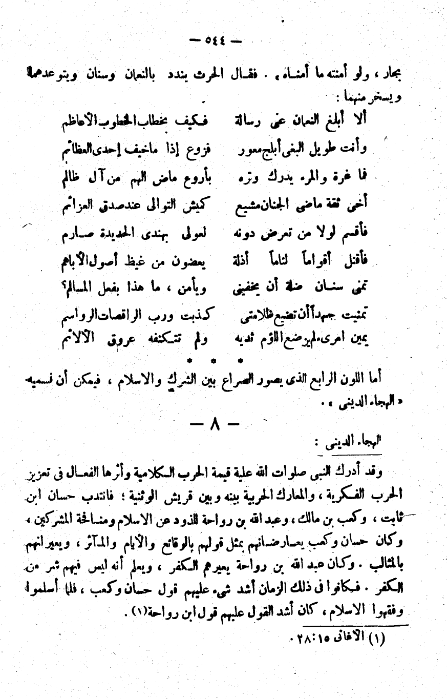 أما اللون الرابع الذي يصور الصراع بين الشرك والإسلام، فيمكن أن نسميه "الهجاء الديني".