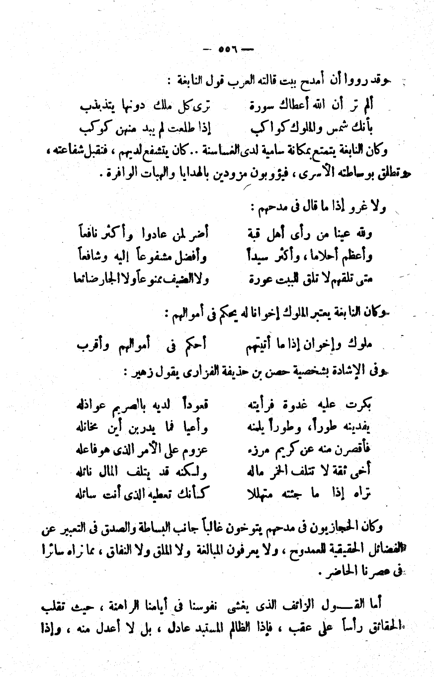 وكان الحجازيون في مدحهم يتوخون غالبا جانب البساطة والصدق في التعبير عن الفضائل الحقيقية للممدوح، ولا يعرفون المبالغة ولا الملق ولا النفاق مما نراه سائرا في عصرنا الحاضر.