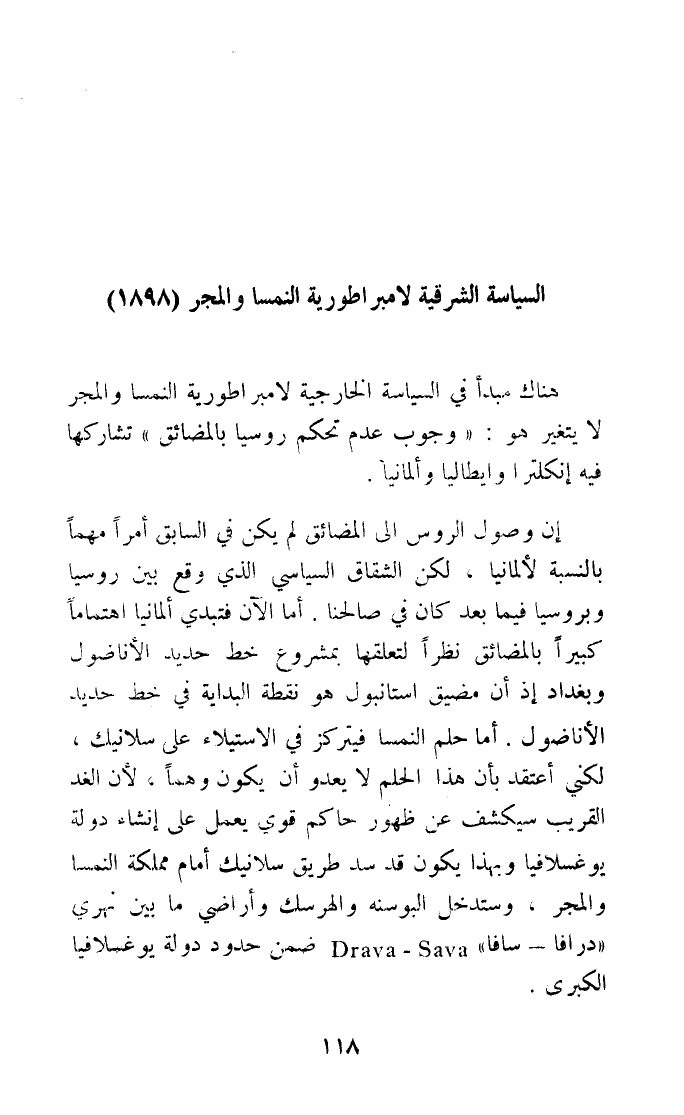 أَن وُصُول الروس إِلَى المضائق لم يكن فِي السَّابِق أمرا مهما بِالنِّسْبَةِ لألمانيا لَكِن الشقاق السياسي الَّذِي وَقع بَين روسيا وبروسيا فِيمَا بعد كَانَ فِي صالحنا أما الْآن فتبدي ألمانيا اهتماما كَبِيرا بالمضائق نظرا لتعلقها بمشروع خطّ حَدِيد الأناضول وبغداد اذ أَن مضيق استانبول هُوَ نقطة الْبِدَايَة فِي خطّ حَدِيد الأناضول أما حلم النمسا فيتركز فِي الِاسْتِيلَاء على سلانيك لكني أعتقد بِأَن هَذَا الْحلم لَا يعدو أَن يكون وهما لِأَن الْغَد الْقَرِيب سيكشف عَن ظُهُور حَاكم قوي يعْمل على انشاء دولة يوغسلافيا وَبِهَذَا يكون قد سد طَرِيق سلانيك أَمَام مملكة النمسا والمجر وستدخل البوسنه والهرسك وأراضي مَا بَين نهري (درافا سافا (ضمن حُدُود دولة يوغسلافيا الْكُبْرَى