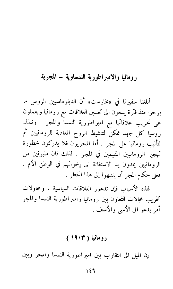لهَذِهِ الْأَسْبَاب فان تدهور العلاقات السياسية ومحاولات تخريب مجالات التعاون بَين رومانيا وامبراطورية النمسا والمجر أَمر يَدْعُو الى الاسى والاسف