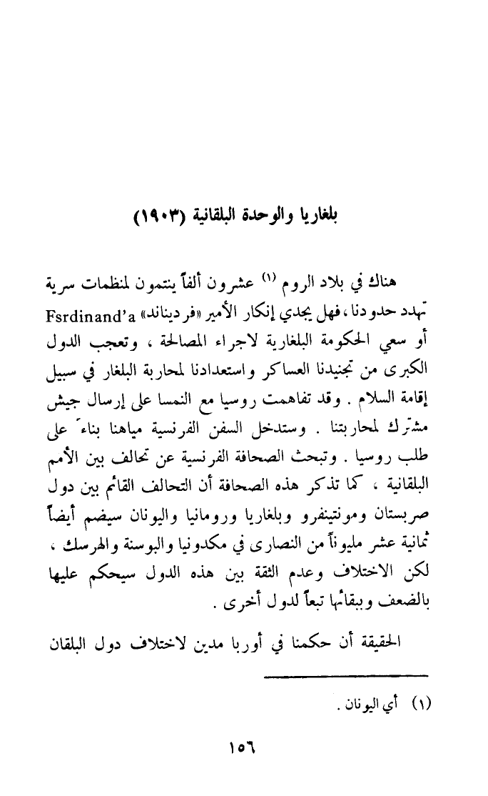 هُنَاكَ فِي بِلَاد الرّوم عشرُون ألفا ينتمون لمنظمات سَرِيَّة تهدد حدونا فَهَل يجدي انكار الامير (فرديناند (أَو سعي الْحُكُومَة البلغارية لاجراء الْمُصَالحَة وتعجب الدول الْكُبْرَى من تجنيدنا العساكر واستعدادنا لمحاربة البلغار فِي سَبِيل اقامة السَّلَام وَقد تفاهمت روسيا مَعَ النمسا على ارسال جَيش مُشْتَرك لمحاربتنا وستدخل السفن الفرنسية مياهنا بِنَاء على طلب روسيا وتبحث الصحافة الفرنسية عَن تحالف بَين الامم البلقانية كَمَا تذكر هَذِه الصحافة أَن التَّحَالُف بَين دوَل صربستان ومونتينفر وبلغاريا ورومانيا واليونان سيضم أَيْضا ثَمَانِيَة عشر مليونا من النَّصَارَى فِي مكدونيا والبوسنة والهرسك لَكِن الِاخْتِلَاف وَعدم الثِّقَة بَين هَذِه الدول سيحكم عَلَيْهَا بالضعف وببقائها تبعا لدول أُخْرَى