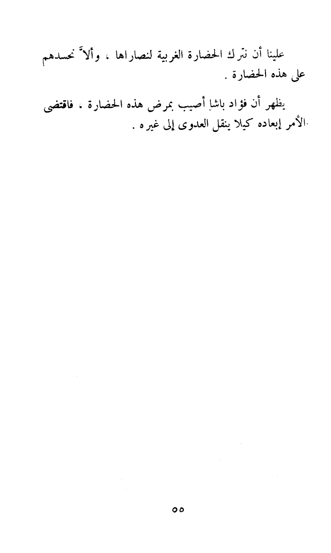 عليننا أَن نَتْرُك الحضارة الغربية لنصاراها والا نحسدهم على هَذِه الحضارة