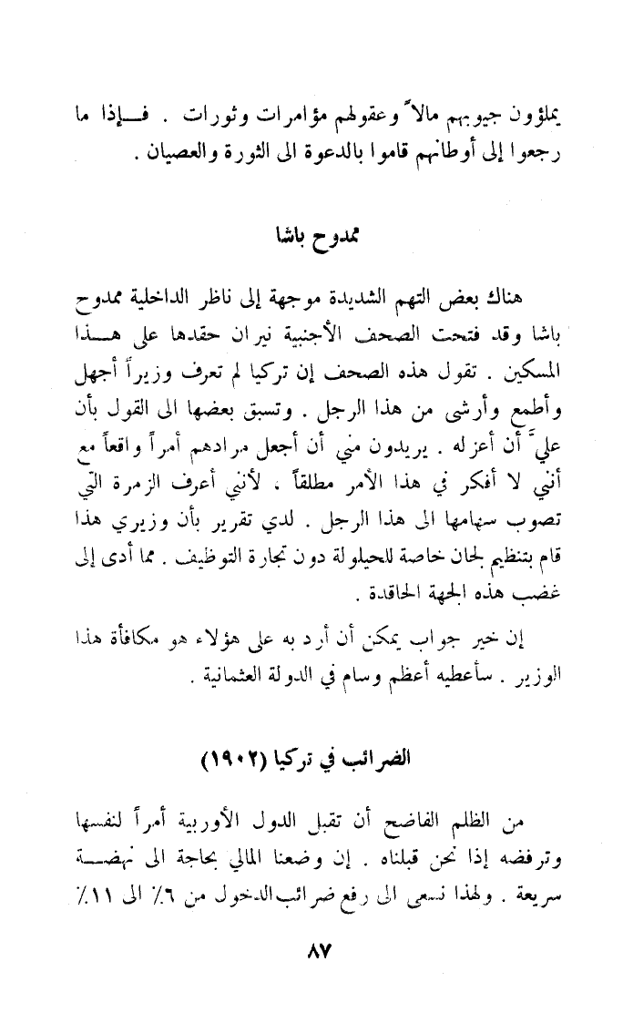 أَن خير جَوَاب يُمكن أَن أرد بِهِ على هَؤُلَاءِ هُوَ مُكَافَأَة هَذَا الْوَزير سأعطيه أعظم وسام فِي الدولة العثمانية لَا الضرائب فِي تركيا (1902)