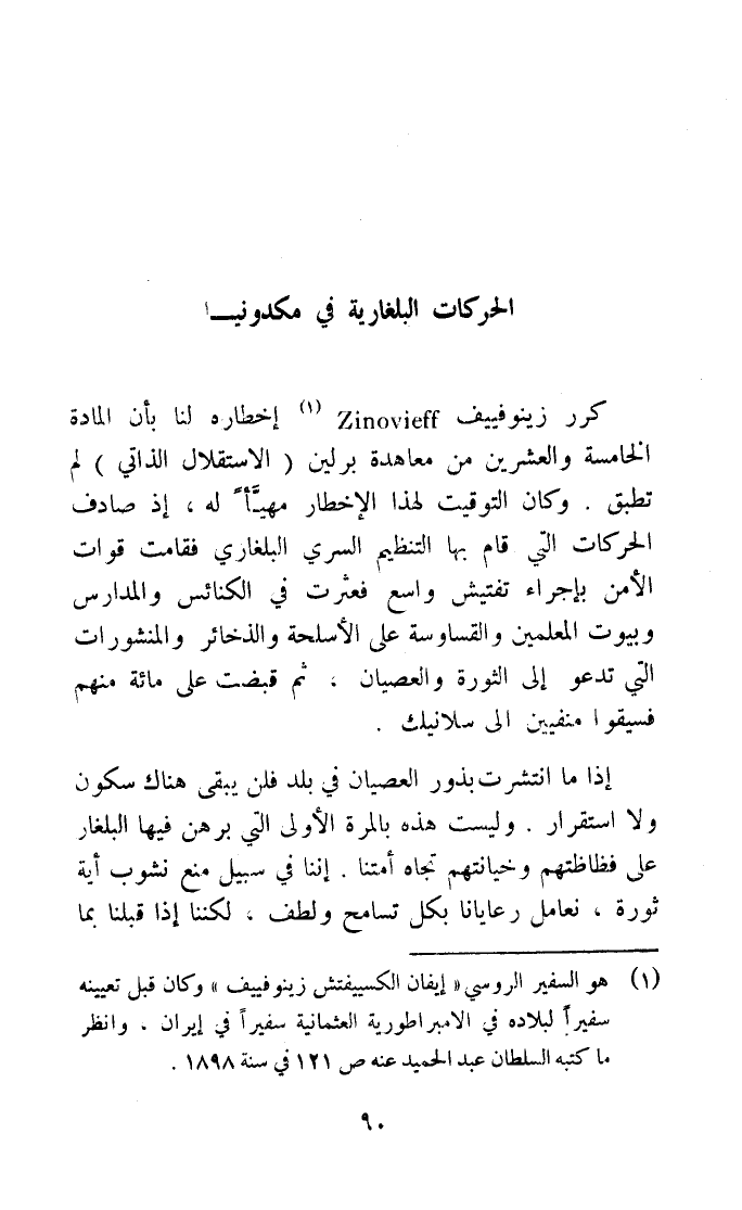 كرر زينوفييف اخطاره لنا بإن الْمَادَّة الْخَامِسَة وَالْعِشْرين من معاهدة برلين (الأستقلال الذاتي) لم تطبق وَكَانَ التَّوْقِيت لهَذَا الاخطار مُهَيَّأ لَهُ اذ صَادف الحركات الَّتِي قَامَ بهَا التنظيم السرى البلغاري فَقَامَتْ قوات الْأَمْن باجراء تفتيش وَاسع فَعَثَرَتْ فِي الْكَنَائِس والمدارس وبيوت المعلمين والقساوسة على الأسلحة والذخائر والمنشورات الَّتِي تَدْعُو إِلَى الثورة والعصيان ثمَّ قبضت على مائَة مِنْهُم فسيقوا منفيين إِلَى سلانيك
