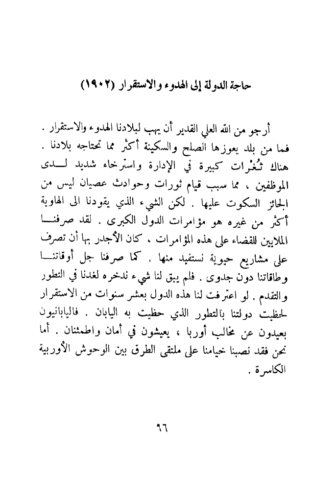 حَاجَة الدولة إِلَى الهدوء والاستقرار (1902)