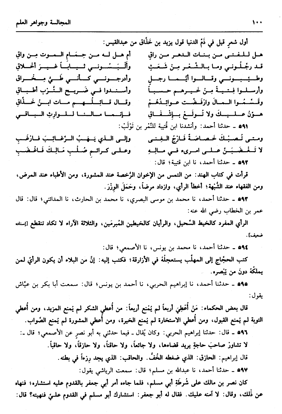 458 - حدثنا أبو إسماعيل الترمذي نا عبد الله بن صالح عن رجاء عن داود بن أبي هند قال جالستُ الفقهاء فوجدت ديني عندهم وجالستُ أصحاب المواعظ فوجدتُ الرِّقَّة َ في قلبي وجالست كبار الناس فوجدت المروءة فيهم وجالست شرار الناس فوجدتُ أحدهم يطلق امرأته على شيء لا يُساوي شَعيرة