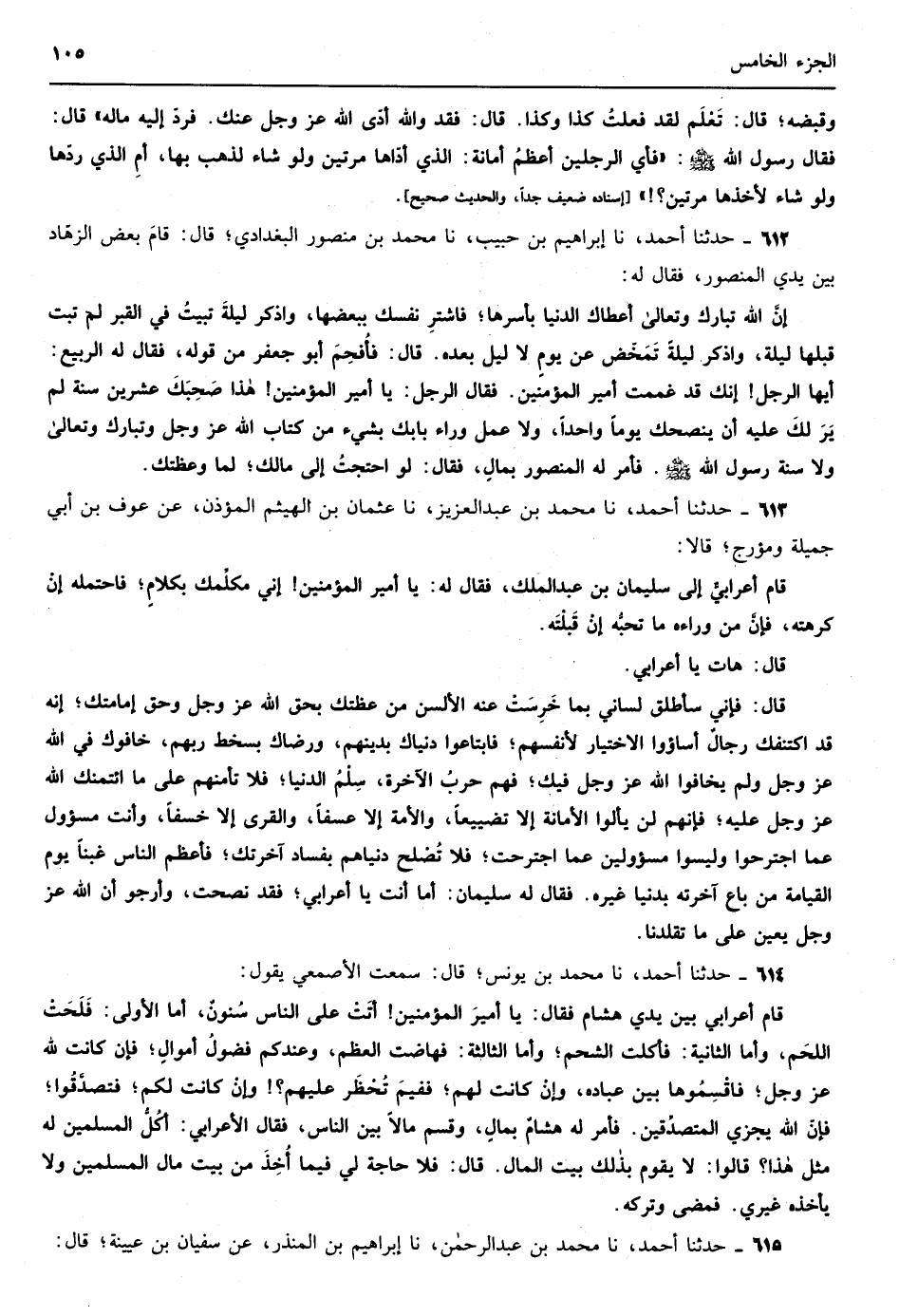 482 - نا أبو قلابة نا داود بن عمرو نا إسماعيل بن عياش عن مطعم بن المقدام الصنعاني عن محمد بن واسع الأزدي قال كتب أبو الدرداء إلى سلمان من أبي الدرداء إلى سلمان أما بعد يا أخي إني أُبنئتُ أنك اشتريت خادماً وإني سمعت النبي {صلى الله عليه وسلم} يقول العبد من الله وهو منه ما لم يُخْدَم فإذا خَدِمَ وقع عليه الحساب وإن أمّ الدرداء سألتني أن أشتري لها خادماً وكنتُ لذلك موسراً وإني خِفتُ الحساب يا أخي إيّاك أن تلقى الله عز وجل وحساب علينا فإن عشْنا بعد نبينا {صلى الله عليه وسلم} دهراً طويلاً والله أعلم بما أحدثنا والله المستعان إسناده ضعيف