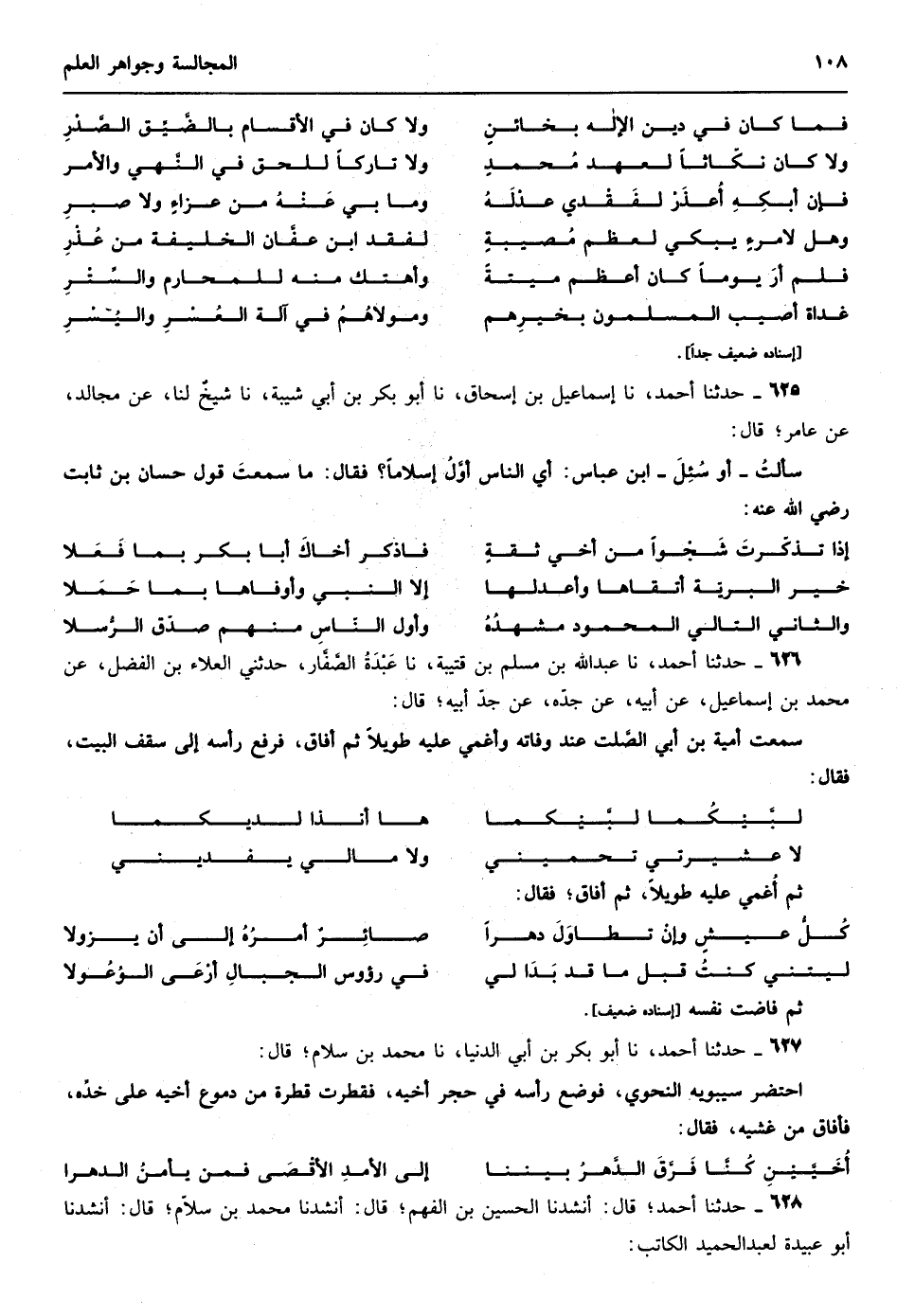 501 - حدثنا أحمد نا أحمد بن عبّاد أحمد بن سعيد الدارمي نا النضر بن شميلٍ قال سمعت الخليل بن أحمد يقول يطولَّ الكلام ليُفهم ويُوجَزُ ليُحْفظ