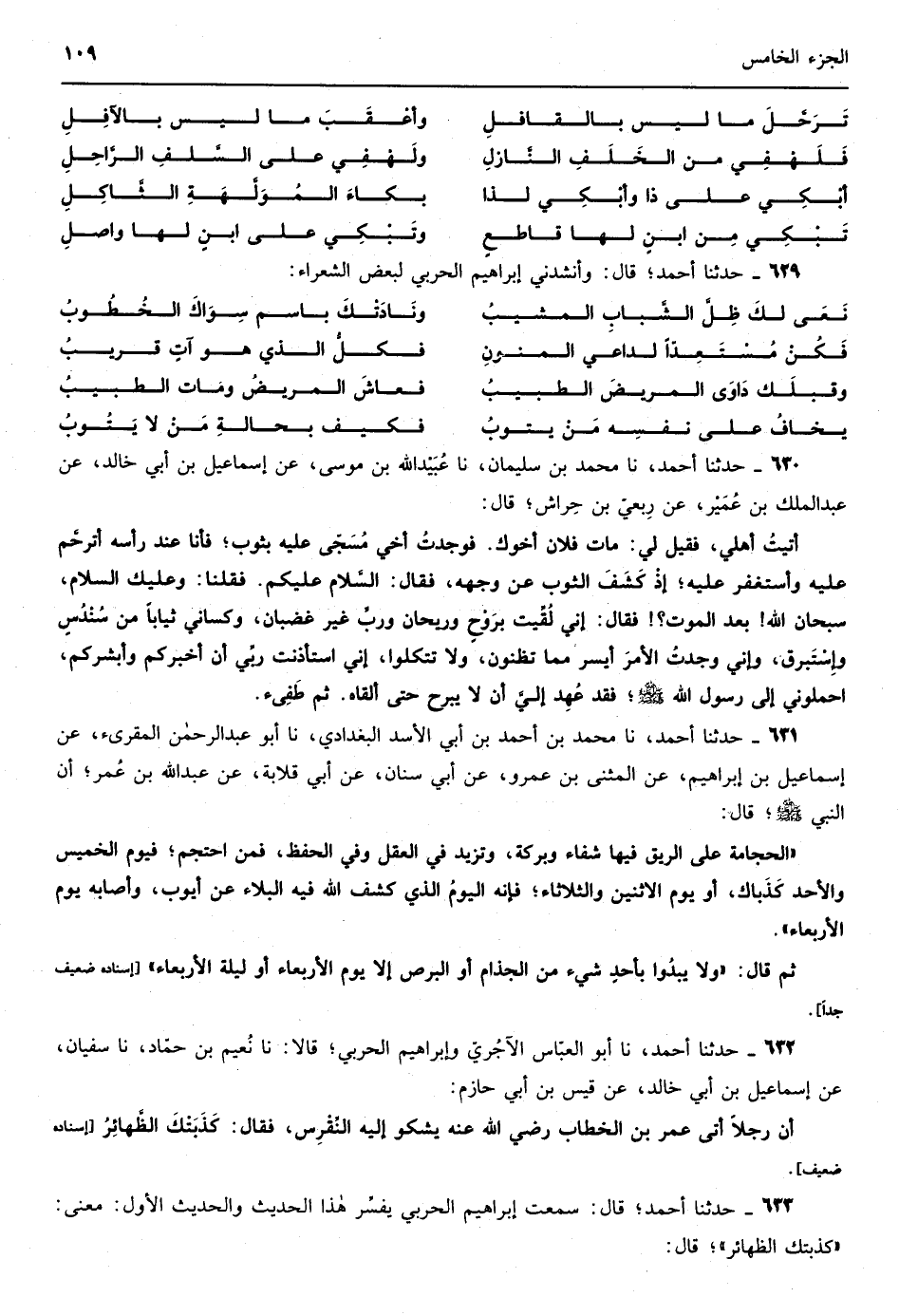 503 - حدثنا أحمد نا يوسف بن عبد الله الحلواني نا عارم بن الفضل نا حمّاد بن زيد عن أيوب السَّختياني أن أكثم بن صَيْفي قال ما يسرًّني أن أنزل دار مَعْجَزَة ٍ فأسمنُ وألبنُ قيل ولم ذاك قال إني أخاف أن أتَّخِذَ العجزَ عادة ً