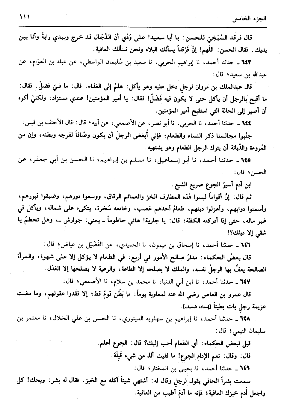 514 - حدثنا أحمد نا أبو بكر بن أبي الدنيا نا محمد بن الحُسين نا عبيد بن إسحاق الضَّبيُّ نا العلاء بن ميمون عن الحكم بن عُتيبة قال مَرَّ أُويس القرني على قصَّار في يوم شديد البرد فرَحِمَهُ أُويس وجَعل يبكي فنظر إليه القصَّار فقال يا أُوَيس ليت تلك الشجرة لم تخلّق قال فما سمع جواباً أسرع منه