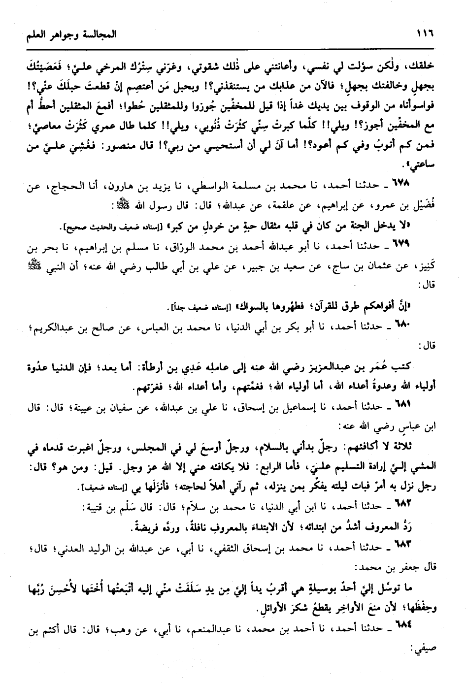 537 - حدثنا أحمد نا أبو بكر أخو خطّاب نا خالد بن خِداش نا ابن عيينة عن ربيعة بن أبي عبد الرحمن قال أدركت مشيخة أهل المدينة لهم الغدائر وعليهم الموَرَّدُ والمُعَصْفَر وفي أيديهم المخاصِرْ وبها آثار الحنّاء ودين أحدهم أبعد من الثريا إِذا أُرِيْدَ دِينُه