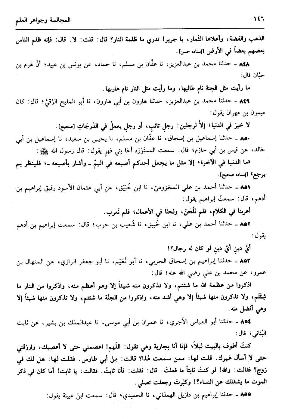666 - حدثنا أحمد نا أحمد بن داود الدينوري نا عبد الرحمن بن أبي خالد حدثني أبي حدثني الحسن بن جمهور مولى المنصور قال أَخْرَجَ إليّ بعضُ وَلدِ سليمان بن علي بن عبد الله بن العباس بن عبد المطلب كتاباً لعبد المطلّب بن هاشم كتبه بخطه فإذا مثل خط النساء وإذا هو باسمك اللهم ذكر حق عبد المطلب بن هاشم من أهل مكة على فلان بن فلان الحميري من أهل صنعاء عليه ألف درهم فضة طيبة كيلاً بالحديد ومتى دعاه بها أجابه شَهِدَ الله والملكان وهذا يدلُّ على أنَّهم كانوا يؤمنون بالملائكة والبعث