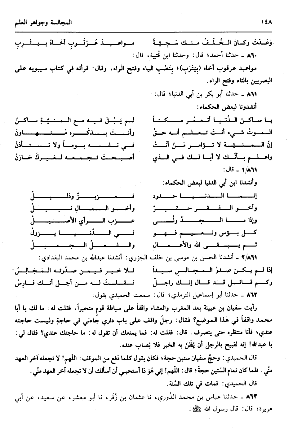676 - حدثنا أحمد نا إسحاق بن ميمون نا أبو نُعيم حدثني من صلَّى إلى جنبِ داود الطَّائي فسمعه يقول في سجوده إلهي همُّك حالف عليّ الهموم وحالفَ بيني وبين السُّهاد ومنع اللذات وشدة ُ الشوق من لقائك أوبقتني الشهوات فأنا في طلبك أيها الكريم مطلوباً