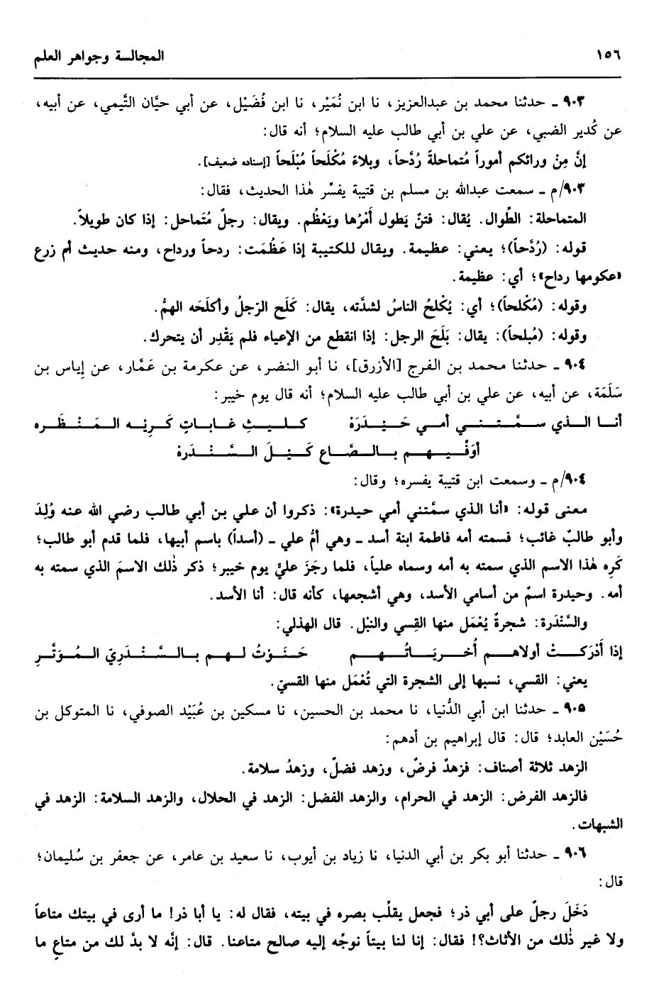718 - حدثنا أحمد نا أحمد بن علي الكابلي نا علي بن عبد الله عن عبد الرزاق عن معمر عن أيوب عن ابن سيرين أنه نهى عن الرُّقي إلا في ثلاث رقية النملة والحُمَة َ والنفس فالنملة قروحٌ تخرج في الجنب قال أبو بكر سمعت ابن قتيبة يقول وذكر هذا الحديث فقال منه حديث النبي {صلى الله عليه وسلم} أنه قال للشفاء علِّمي حفصة رقية النملة قال ابن قتيبة وقال الشاعر