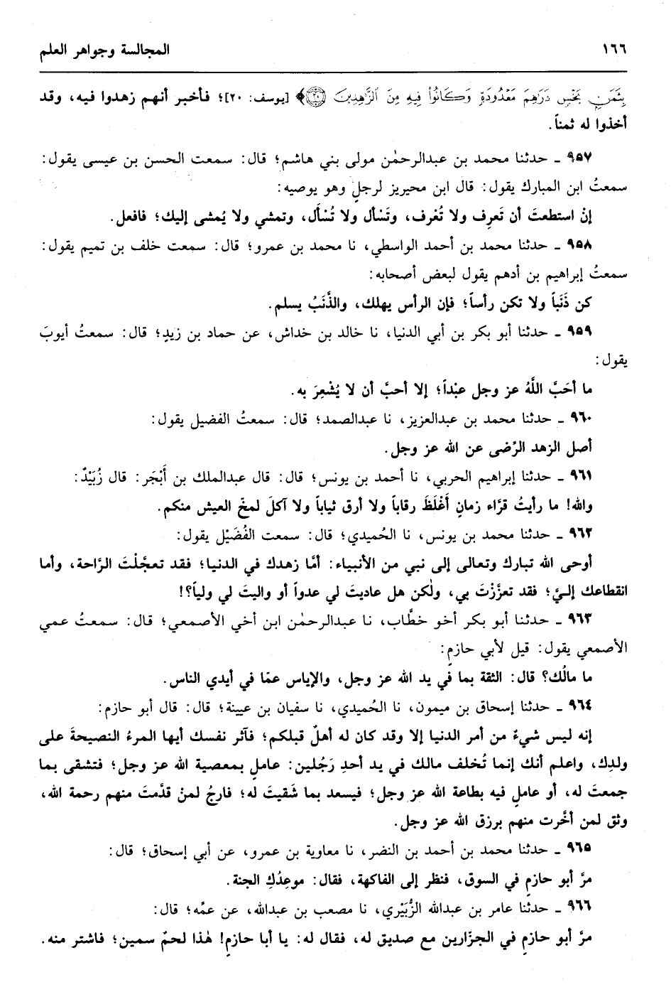 758 - حدثنا عامر بن عبد الله الزبيري نا مصعب بن عبد الله عن أبيه عن جده عن هشام بن عروة أنه أنشده هذه الأبيات لصفية بنت عبد المطلب في رسول الله {صلى الله عليه وسلم} يوم مات