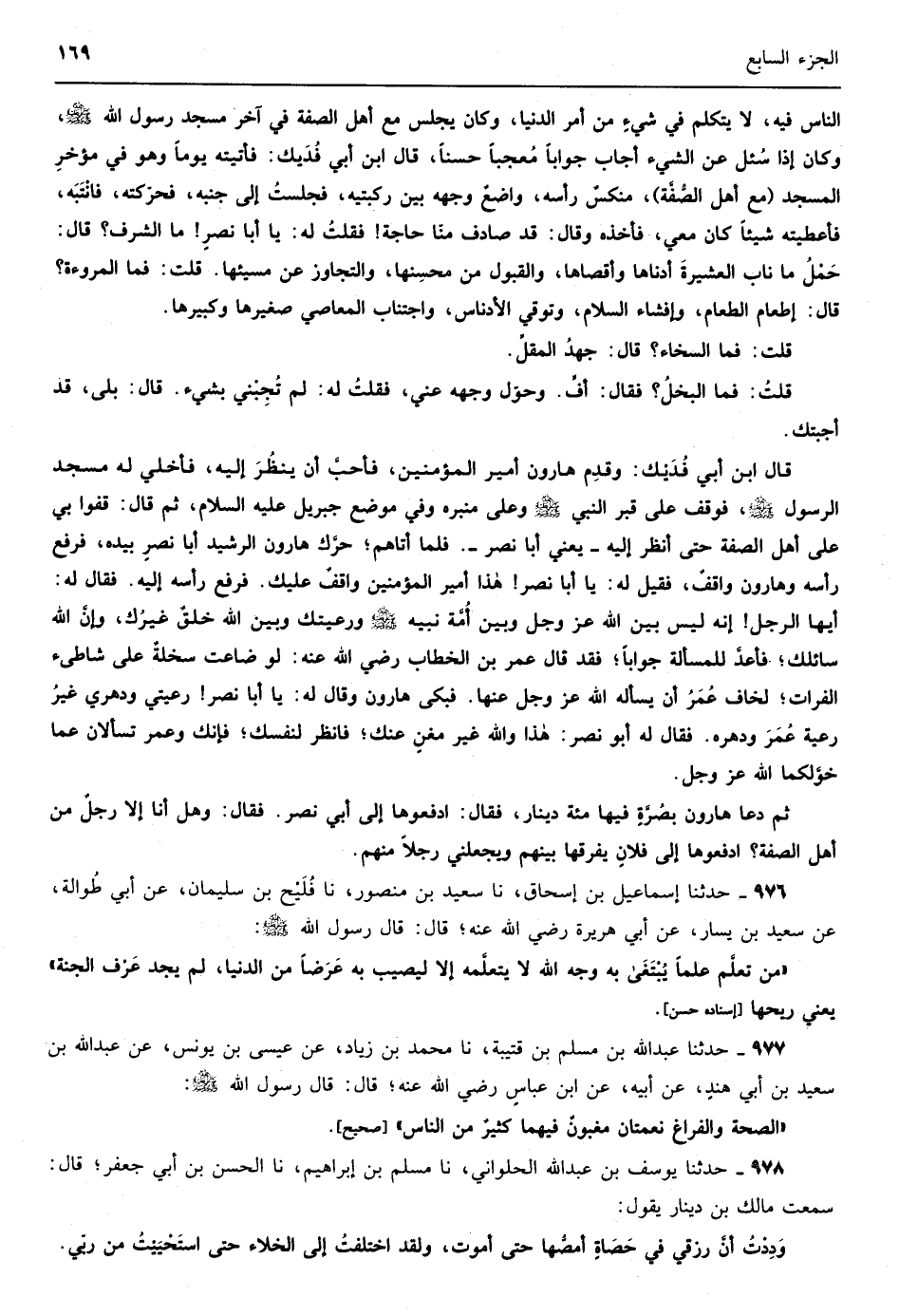 قال وإلى جانبي رجل يسمع ما أقول فقال لي يا عبد الله هل لك علم بقائل هذه الأبيات قلت لا والله إلا أني أرويها منذ زمان فقال والذي يحلف به إن قائلها لصاحبنا الذي دفناه آنفا