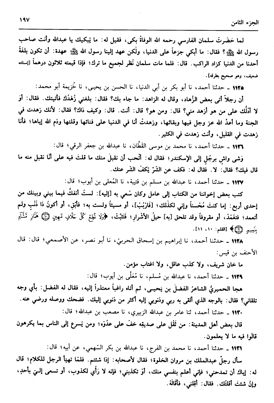 905 - حدثنا ابن أبي الدنيا نا محمد بن الحسين نا مسكين بن عبيد الصوفي نا المتوكل بن حسين العابد قال قال إبراهيم بن أدهم الزهد ثلاثة أصناف فزهد فرض وزهد فضل وزهد سلامة فالزهد الفرض الزهد في الحرام والزهد الفضل الزهد في الحلال والزهد السلامة الزهد في الشبهات