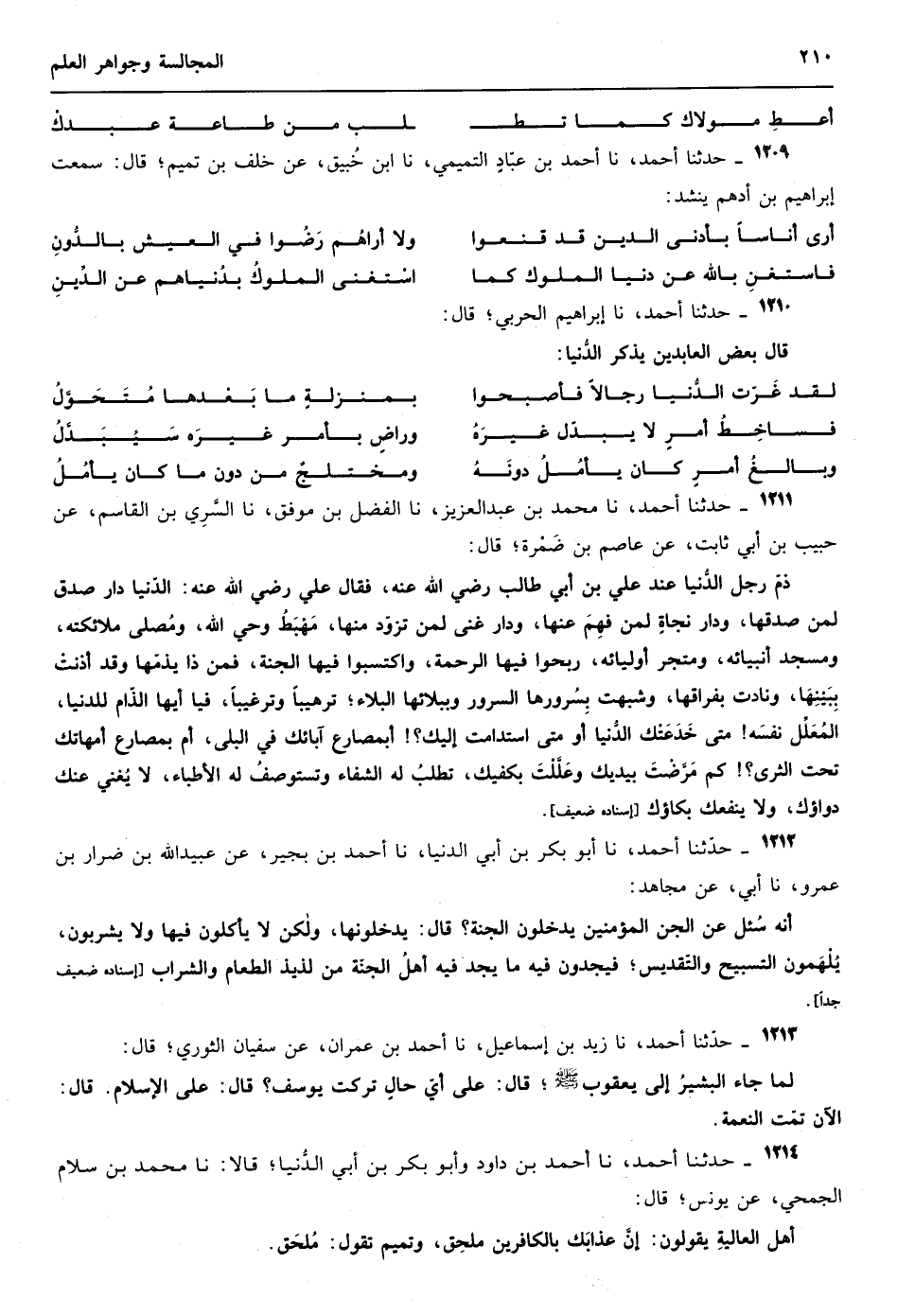 969 - حدثنا يحيى بن المختار قال سمعت بشر بن الحارث يقول لقي زاهد زاهداً فقال له يا أخي إني أحبك في الله عز وجل فقال الآخر لو علمتَ مني ما أعلم من نفسي لأبغضتني في الله فقال له الأول لو علمت منك ما تعلم من نفسك لكان لي فيما أعلم من نفسي شغل عن بغضك