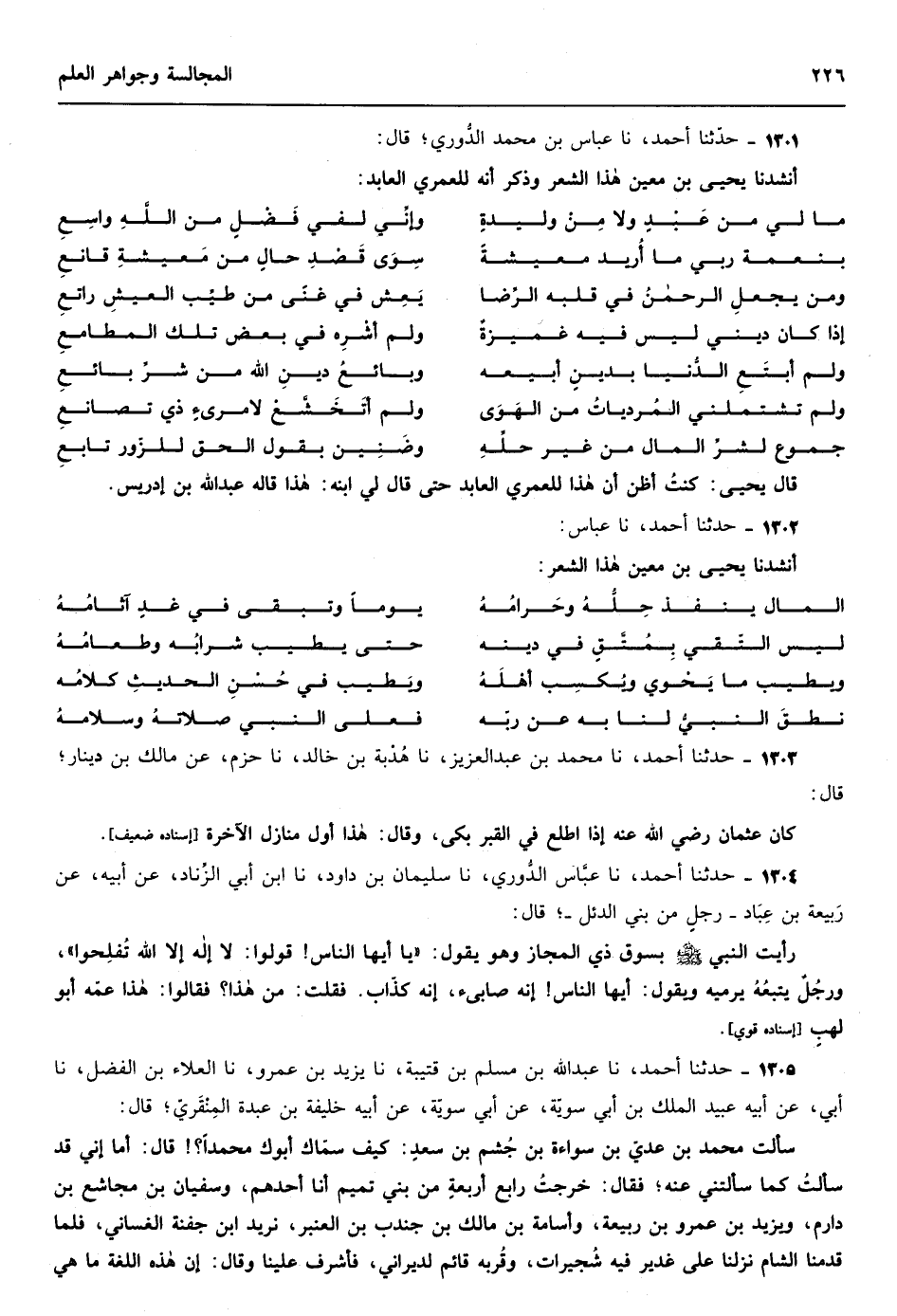 1024 - حدثنا أحمد نا إسماعيل بن يونس نا الرياشي عن العتبي قال استعمل أبو بكر الصديق رضي الله عنه يزيد بن أبي سفيان على ربع من أرباع الشام فلما صعد المنبر ارتج عليه فقال يا أهل الشام عسى الله أن يجعل بعد عسر يسرا وبعد عيٍّ بيانا واعلموا أنكم إلى إمام عاقل أحوج منكم إلى إمام قائل ثم نزل فبلغ ذلك عمرو بن العاص رضي الله عنه فاستحسنه إسناده ضعيف