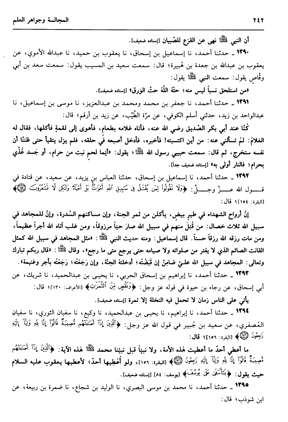 1092 - حدثنا أحمد نا إبراهيم بن إسحاق الثقفي - من شيعة ولد العباس - نا محمد بن الحارث قال سمعت المدائني يقول قال رجل لأبيه يا أبت إن عظم حقك علي لا يذهب صغير حقي عليك والذي تمت به إليّ أمتُّ بمثله إليك ولست أزعم أنا على سواء