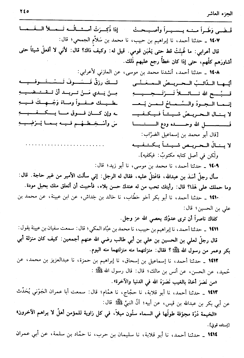 1108 - حدثنا أحمد نا أحمد بن محرز الهروي نا الحماني قال أنشدني مسعر