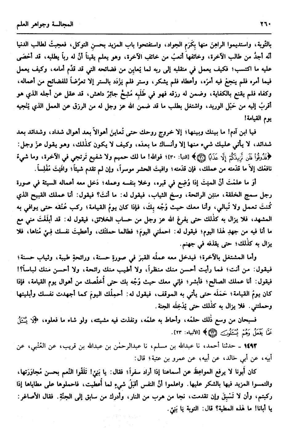1188 - حدثنا أحمد نا إبراهيم الحربي نا الرياشي عن أحمد بن سلام مولى يزيد بن حاتم قال قال كسرى لا تنزلن ببلد ليس فيه خمسة أشياء سلطان قاهر وقاضي عادل وسوق قائمة وطبيب عالم ونهر جار