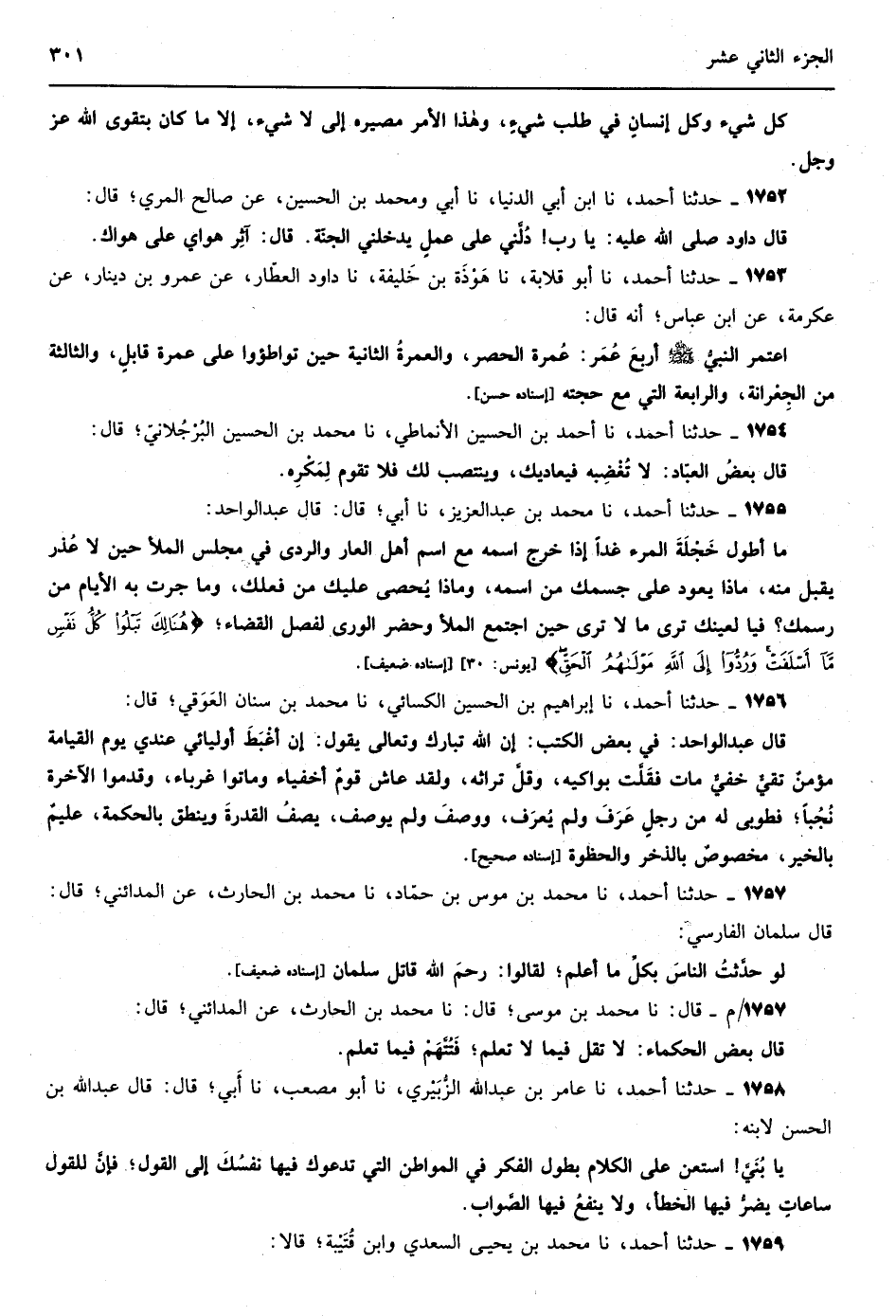 1380 - حدثنا أحمد نا جعفر بن محمد نا أبو الأشهب هوذة بن خليفة بن عبد الرحمن قال قال رجل لعبيد الله بن أبي بكرة ما تقول في موت الوالد قال مُلكٌ حادث قال فموت الأخ قال قص الجناح قال فموت الزوج قال عرس جديد قال فموت الولد قال صدع في الفؤاد لا يجبر ثم أنشد أبو الأشهب لبعضهم